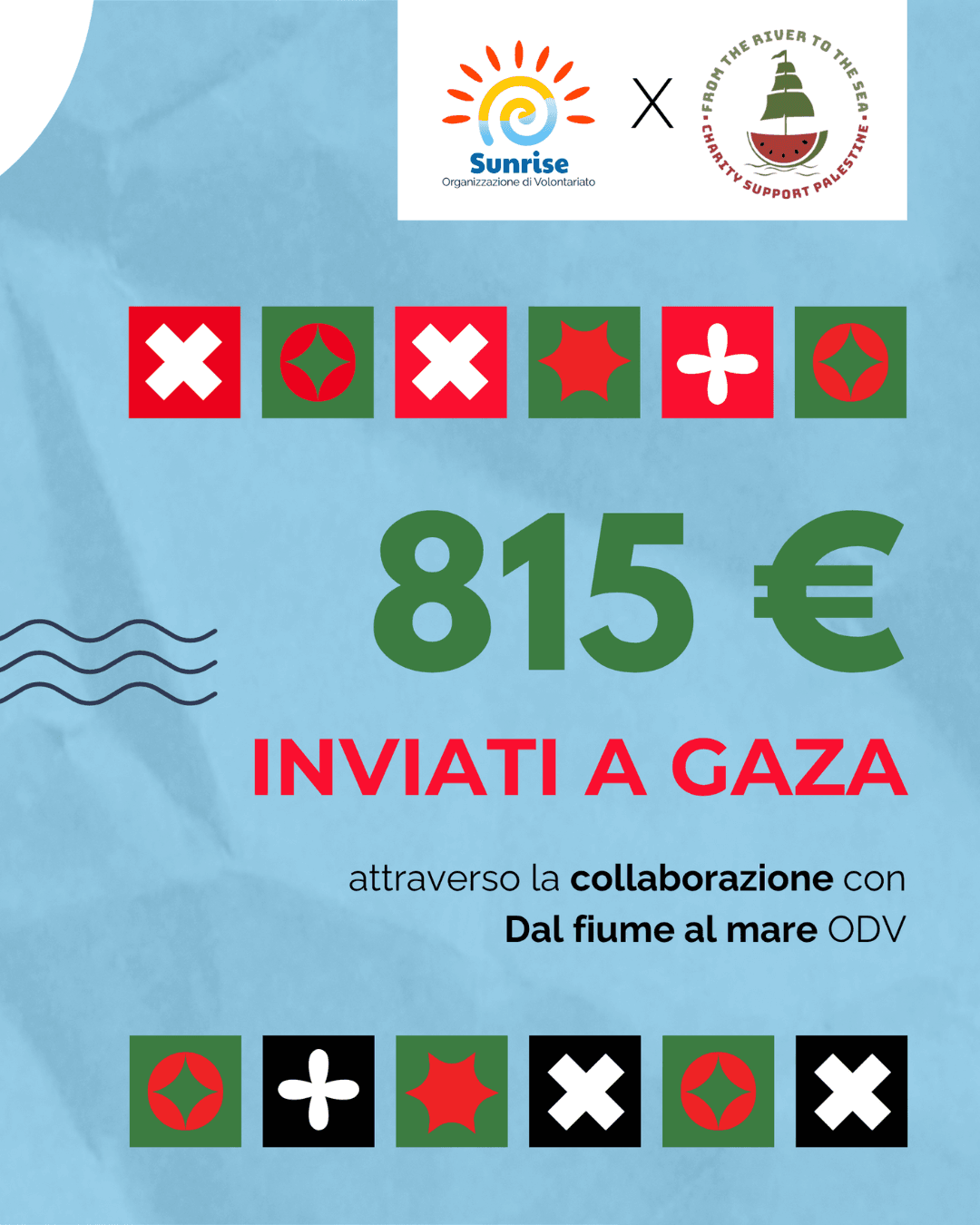 Durante la giornata, Sunrise ha raccolto 4.475 € di cui 815 € sono stati inviati a Gaza, in collaborazione con l’associazione Dal fiume al mare OdV, mentre la restante parte sarà destinata al Madagascar per sostenere il progetto “Tsara Tsiky: sapone ed empowerment femminile“.