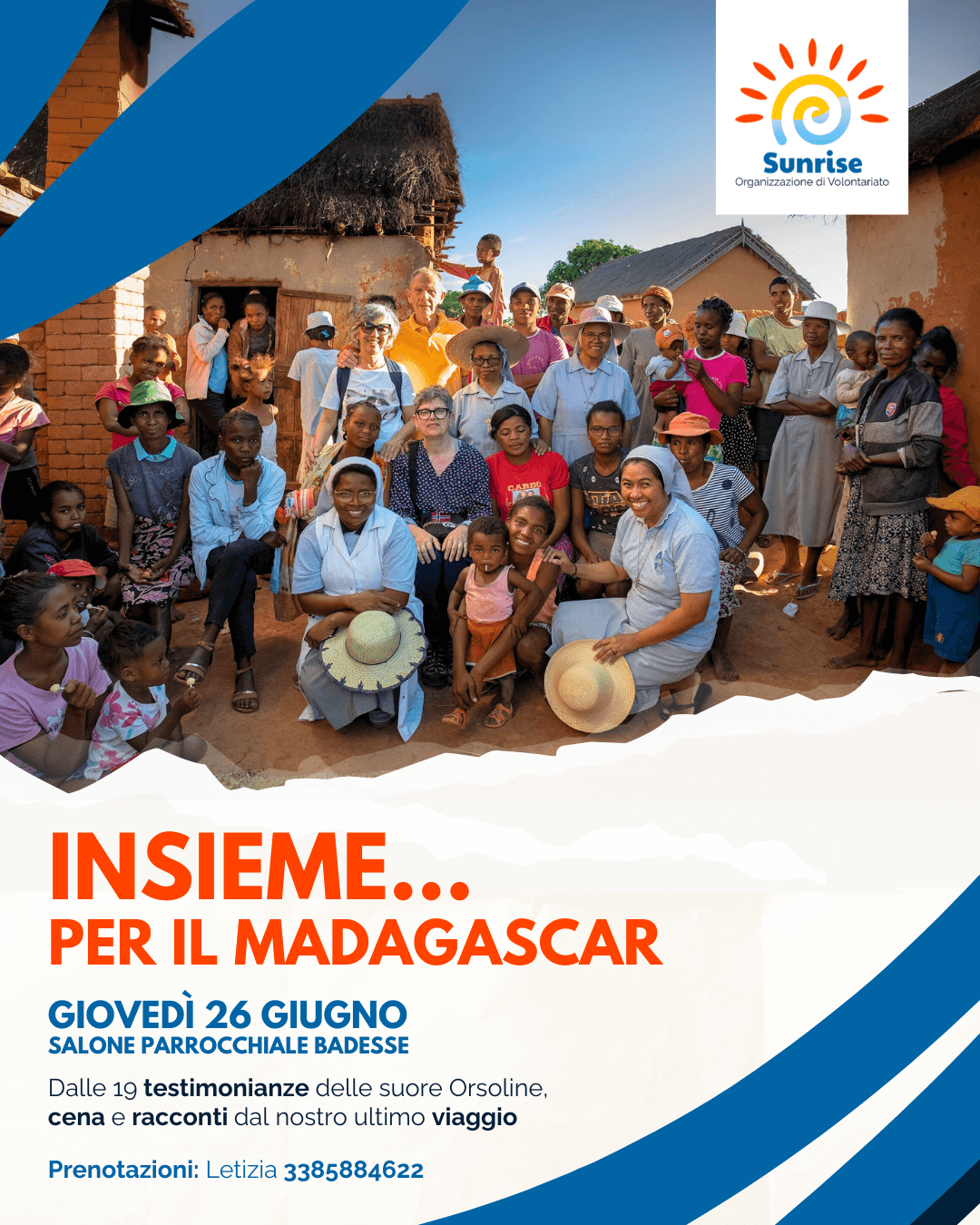 Vi aspettiamo giovedì 26 giugno dalle 19, presso il salone parrocchiale di Badesse, con le testimonianze delle suore Orsoline, cena e racconti dal nostro ultimo viaggio.